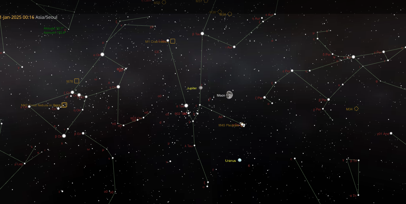 - 알데바란과 플레이아데스 성단은 맨눈으로도 밝고 뚜렷하게 보입니다.